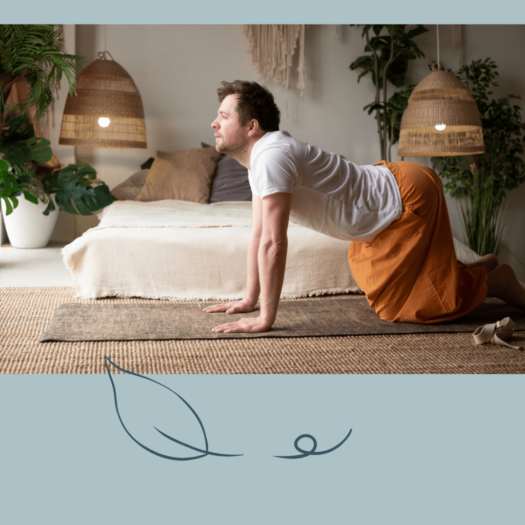 Start on all fours, palms on the floor pointing forward, ensuring the distance between the palms and the knees are same and aligned. Inhale raise the neck up bringing the chest out. Drop your belly and raise your tailbone to the sky. Exhale, bringing your chin down towards your chest. Allow your back to round bringing your belly button towards your spine like a cat. Move slowly and make sure you stack each vertebrae as you inhale and lower your spine. Gently repeat pose with 12 rounds of inhalation and exhalation.